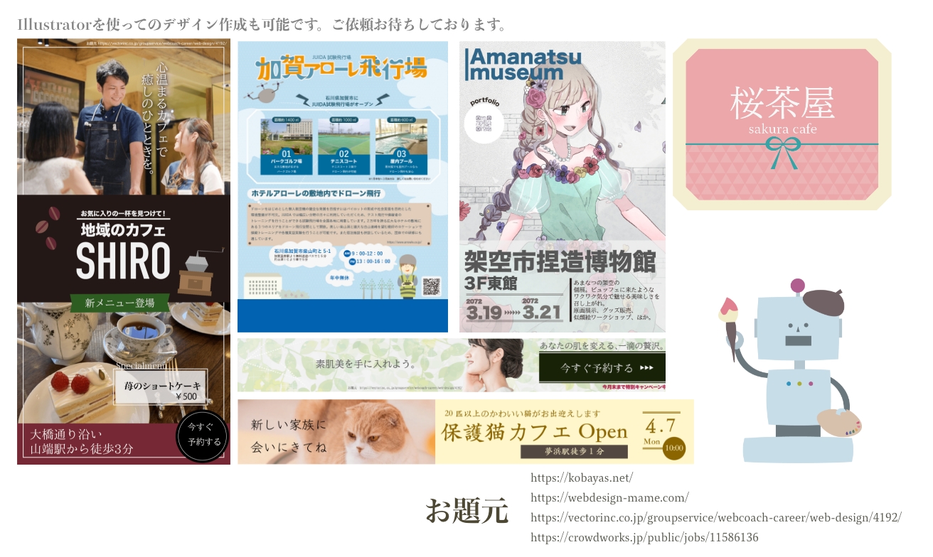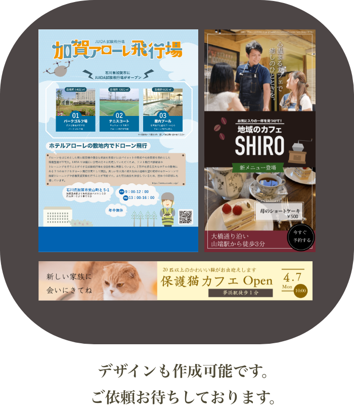 ビジネスまで幅広く対応しております。デザイン業務も可能です。